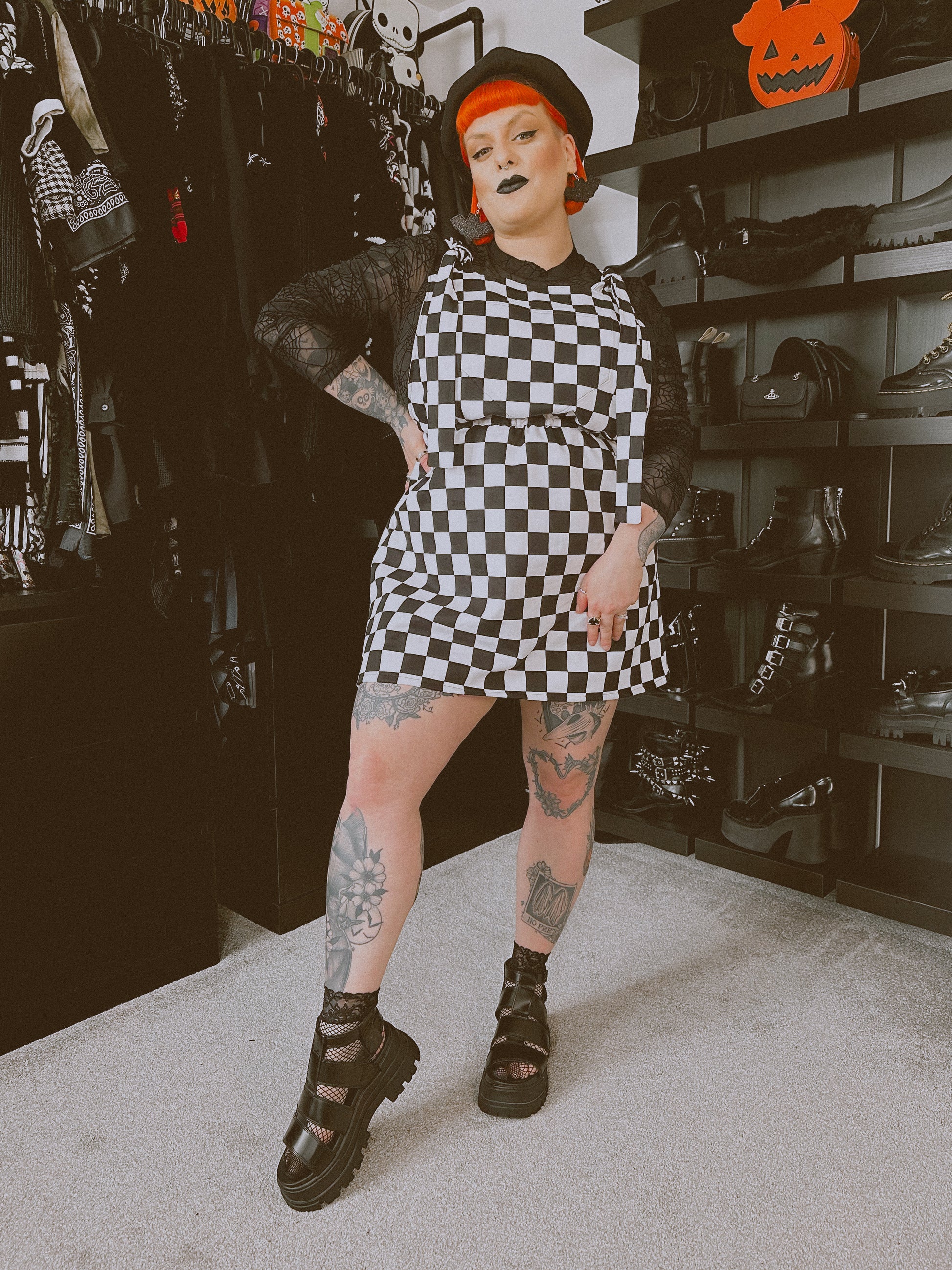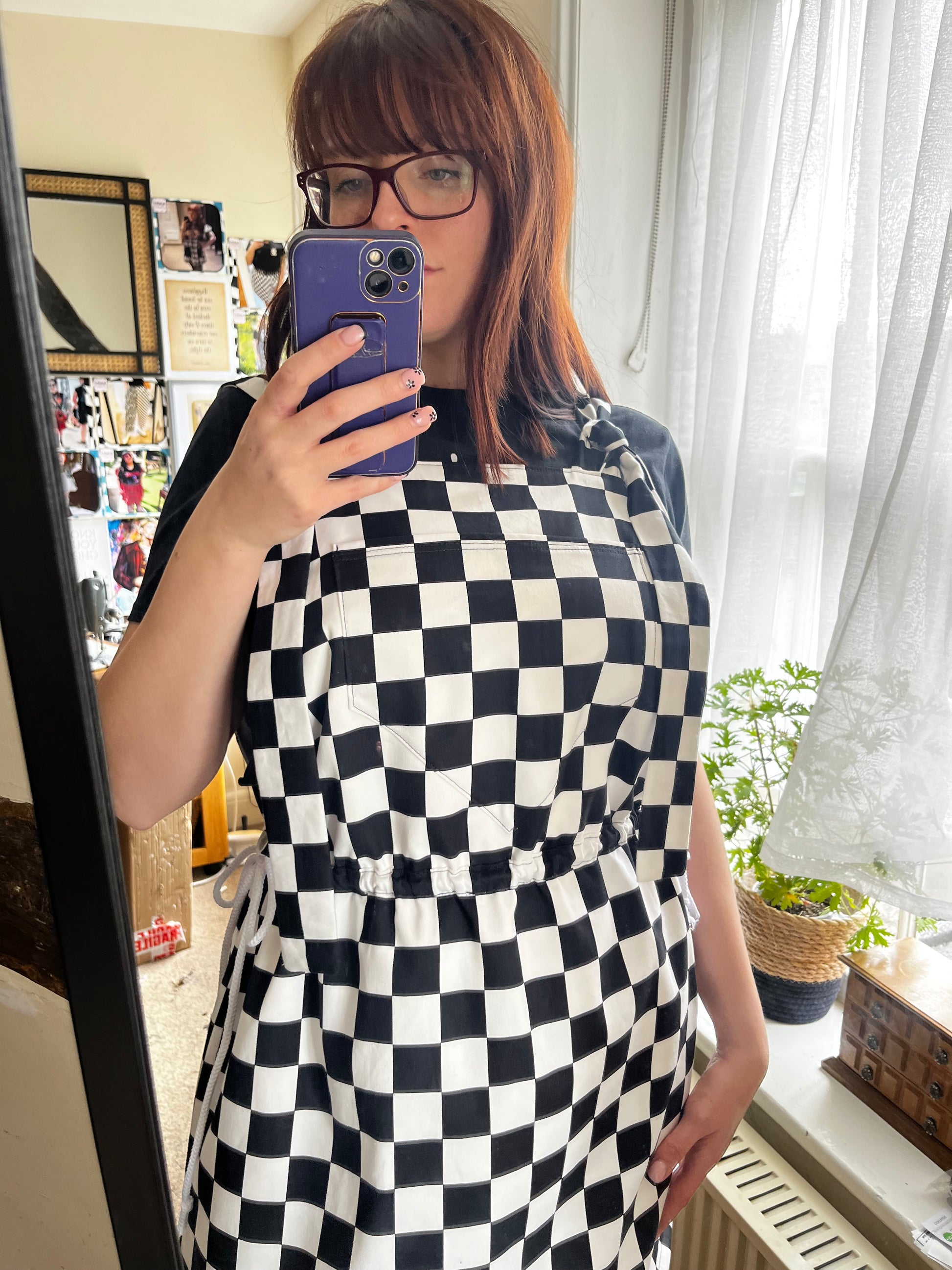 Heres the gorgeous checkmate Dungaree Dress. This has to be the most flattering dungaree dress design ever and it’s completely unique to Blaize’s Uniques.
