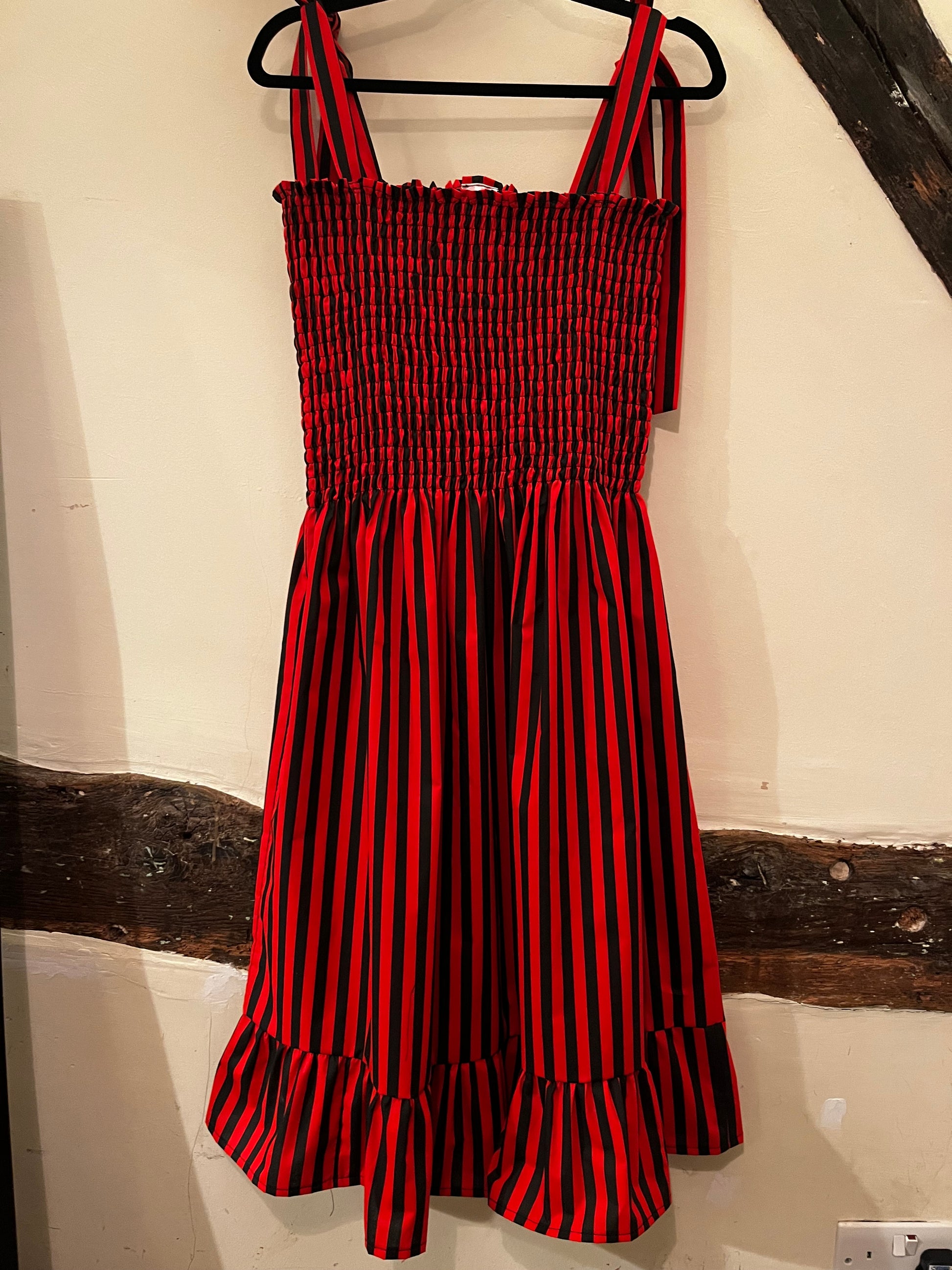 Here is the tiered shirred strap dress. You can pick any fabric to make this your own! It’s so flattering with the tiered sections.