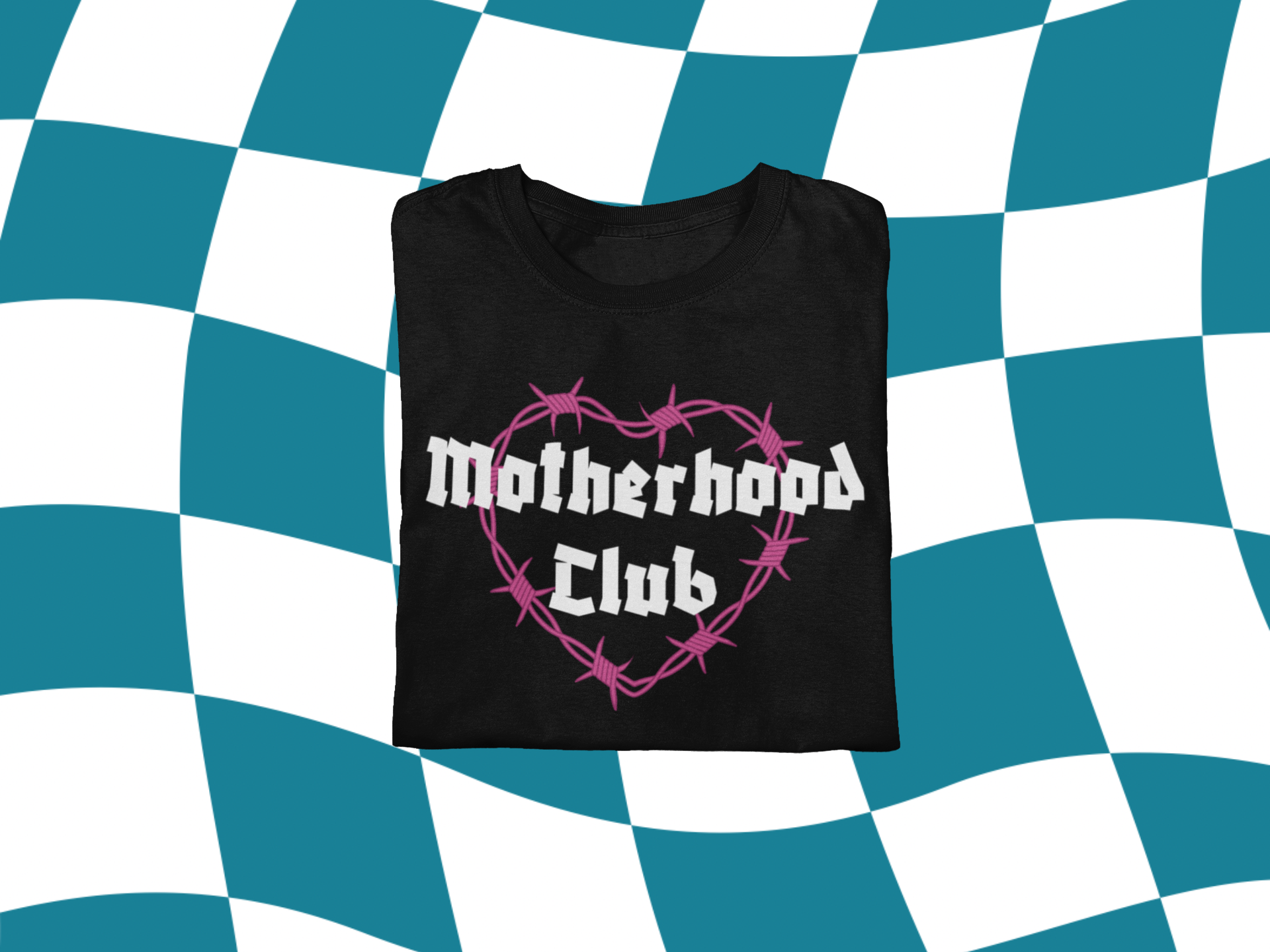 Here is the unisex Motherhood Club Tee. With a pink heart. Inspired by the club of amazing, unique, inspiring, everywoman, fabulous and loved Mums out there. Come and join the club, I know you want to.