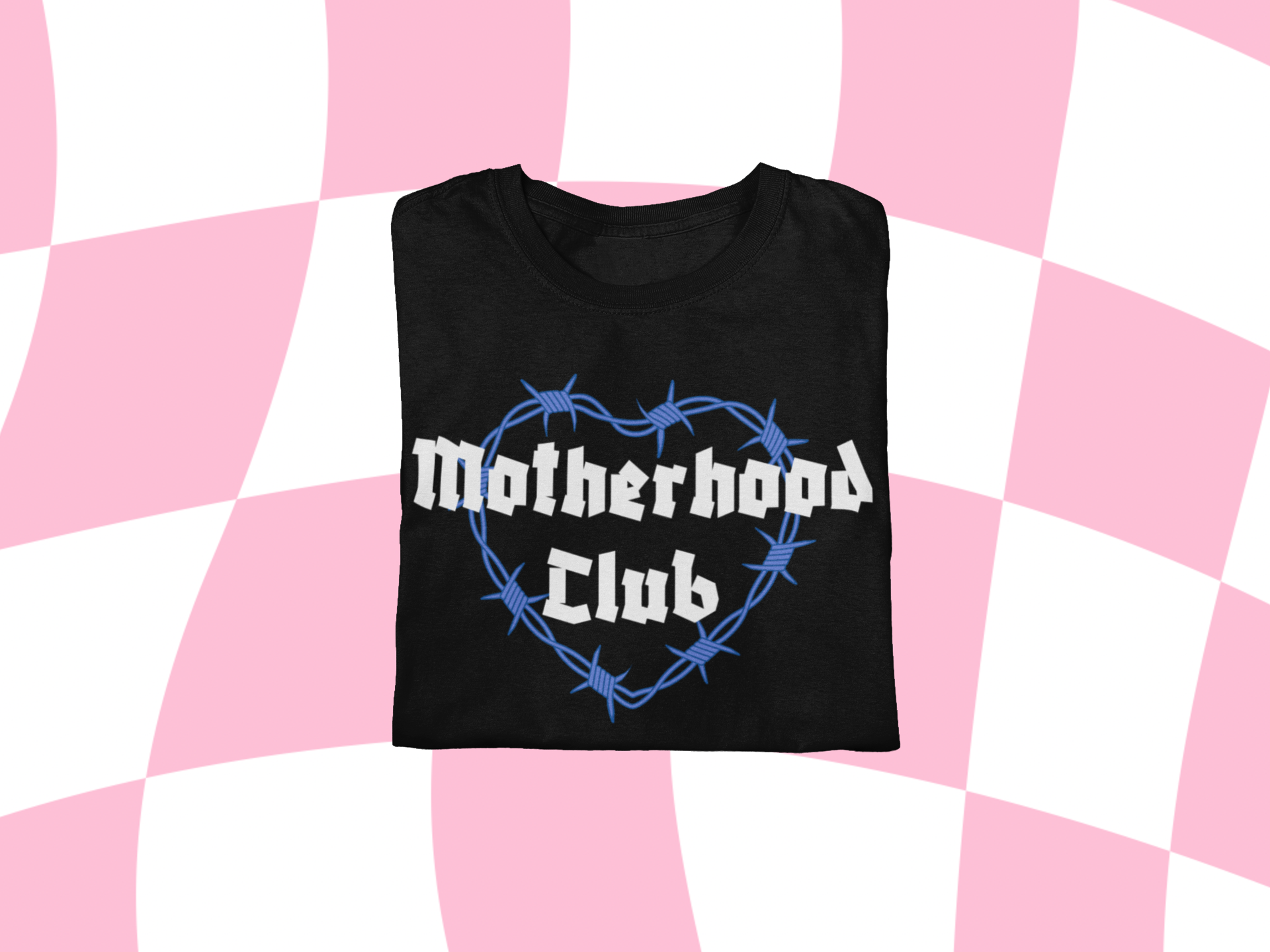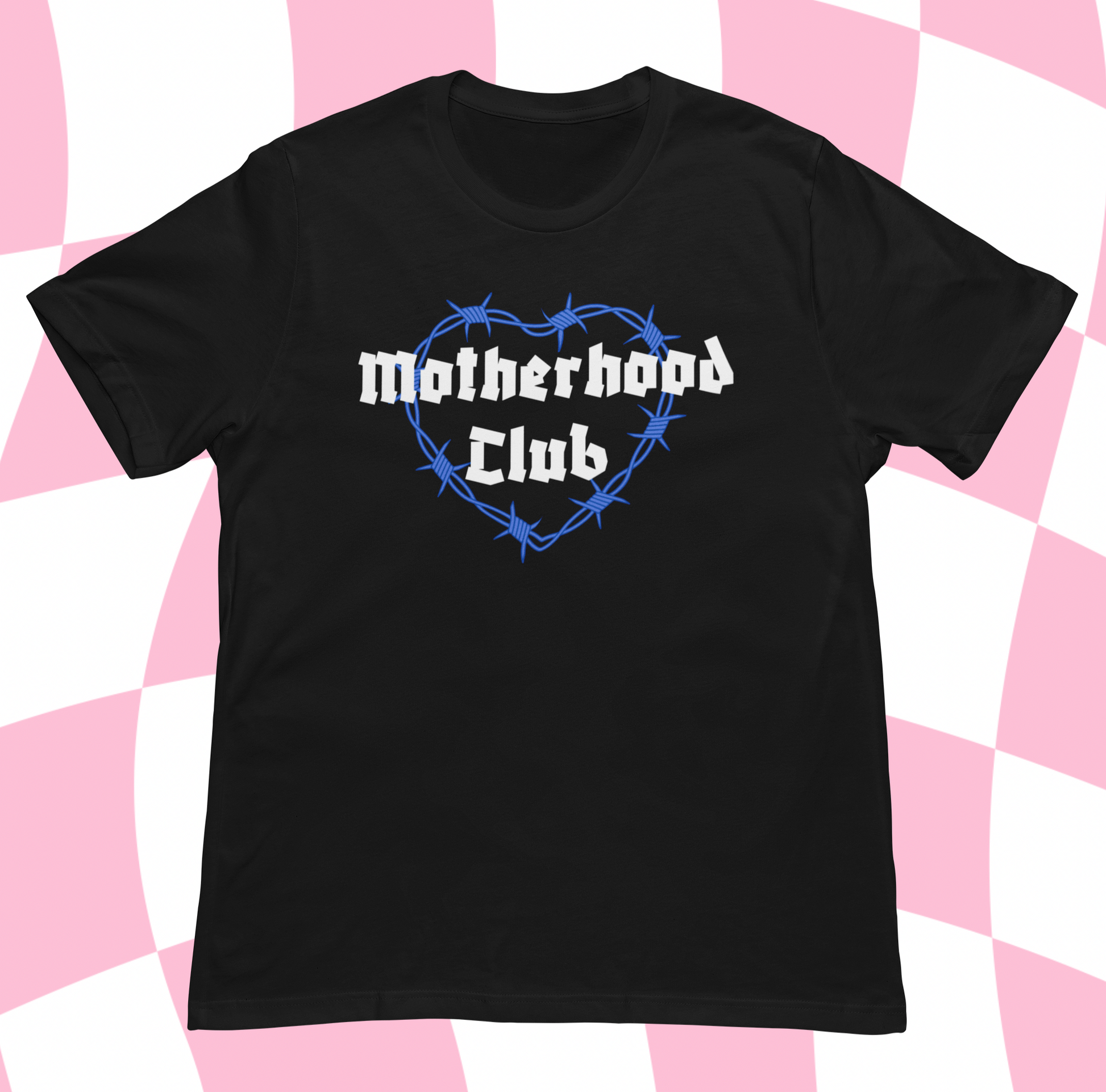 Here is the unisex Motherhood Club Tee. With a blue heart. Inspired by the club of amazing, unique, inspiring, everywoman, fabulous and loved Mums out there. Come and join the club, I know you want to.