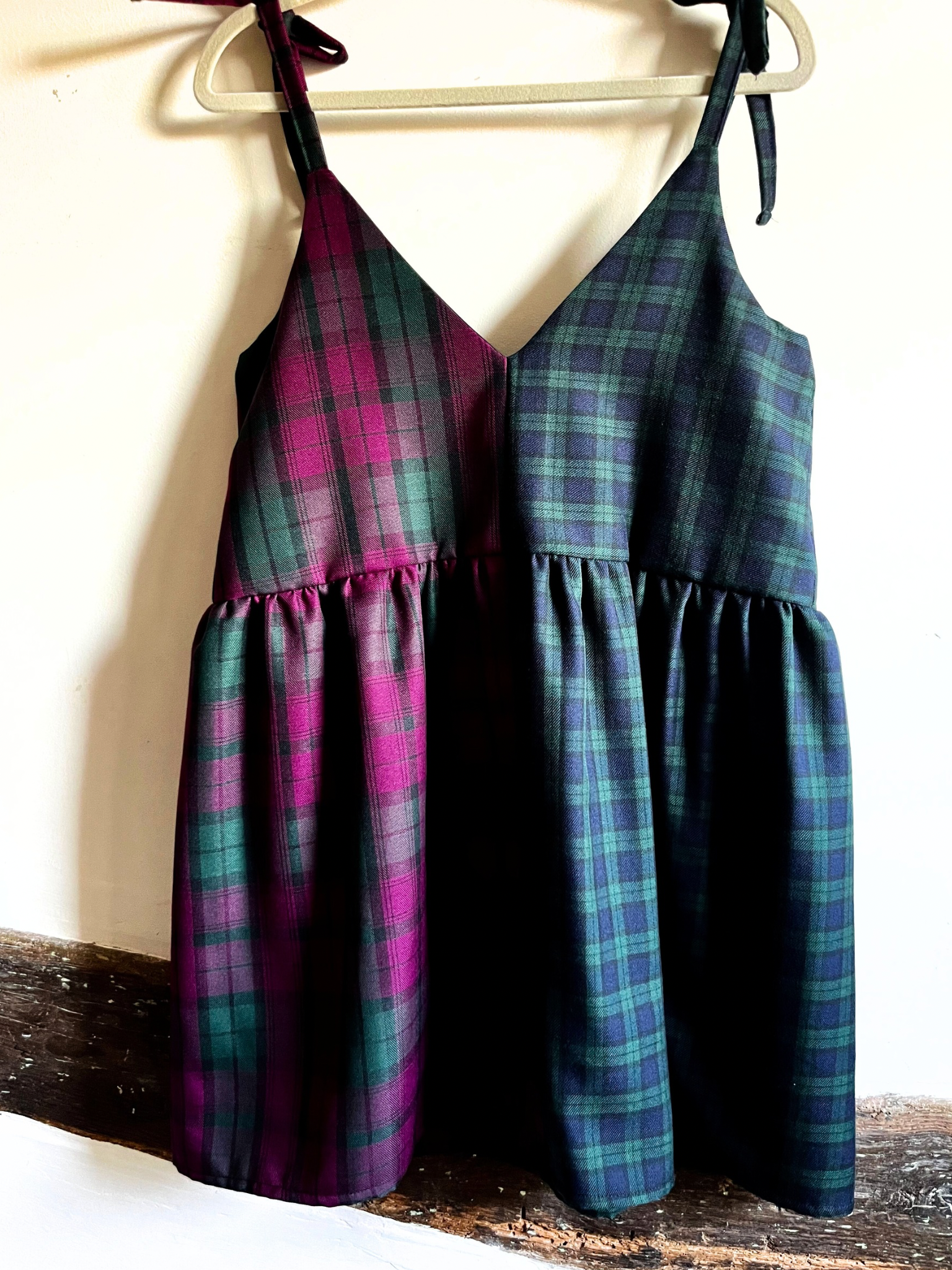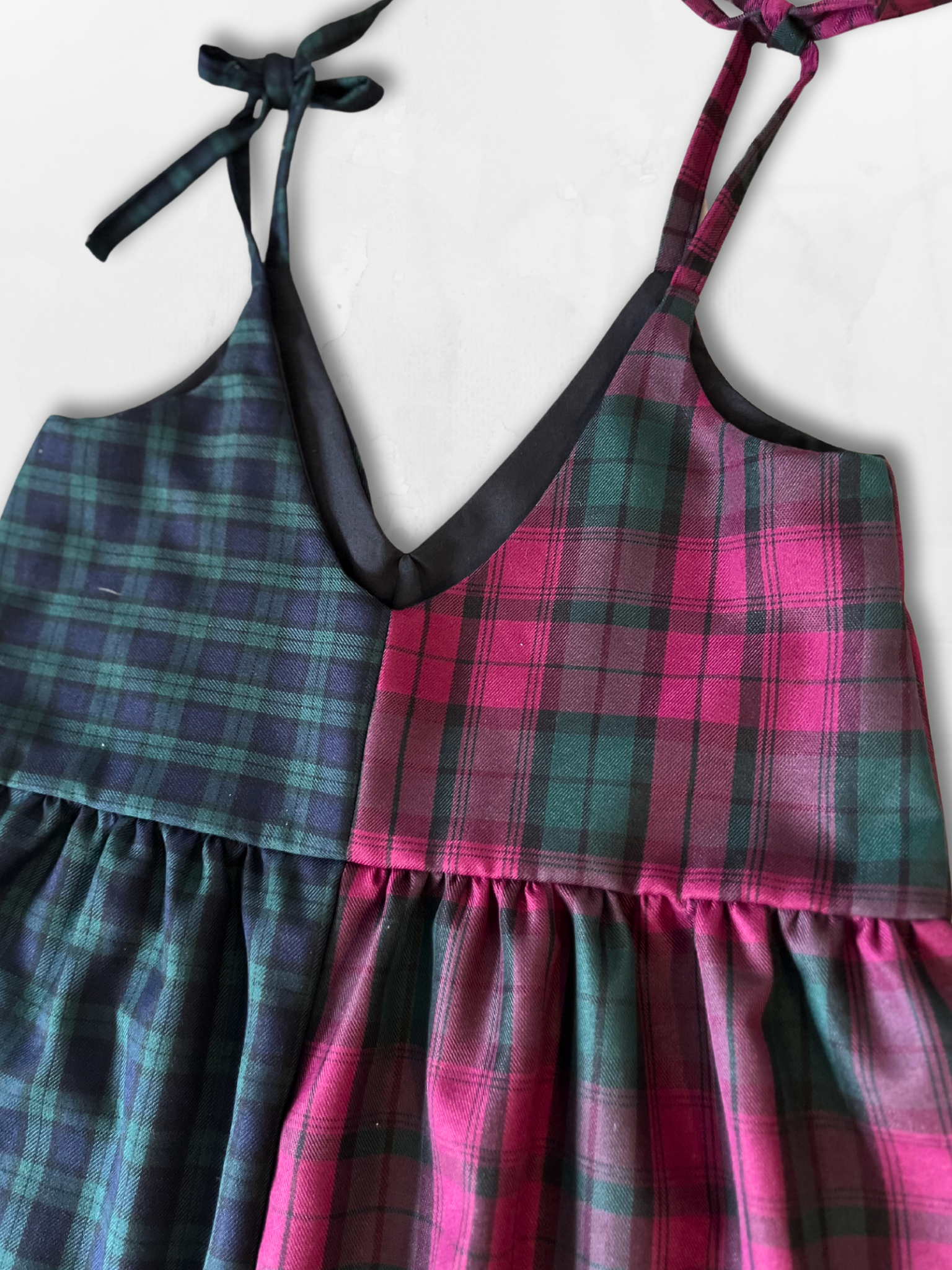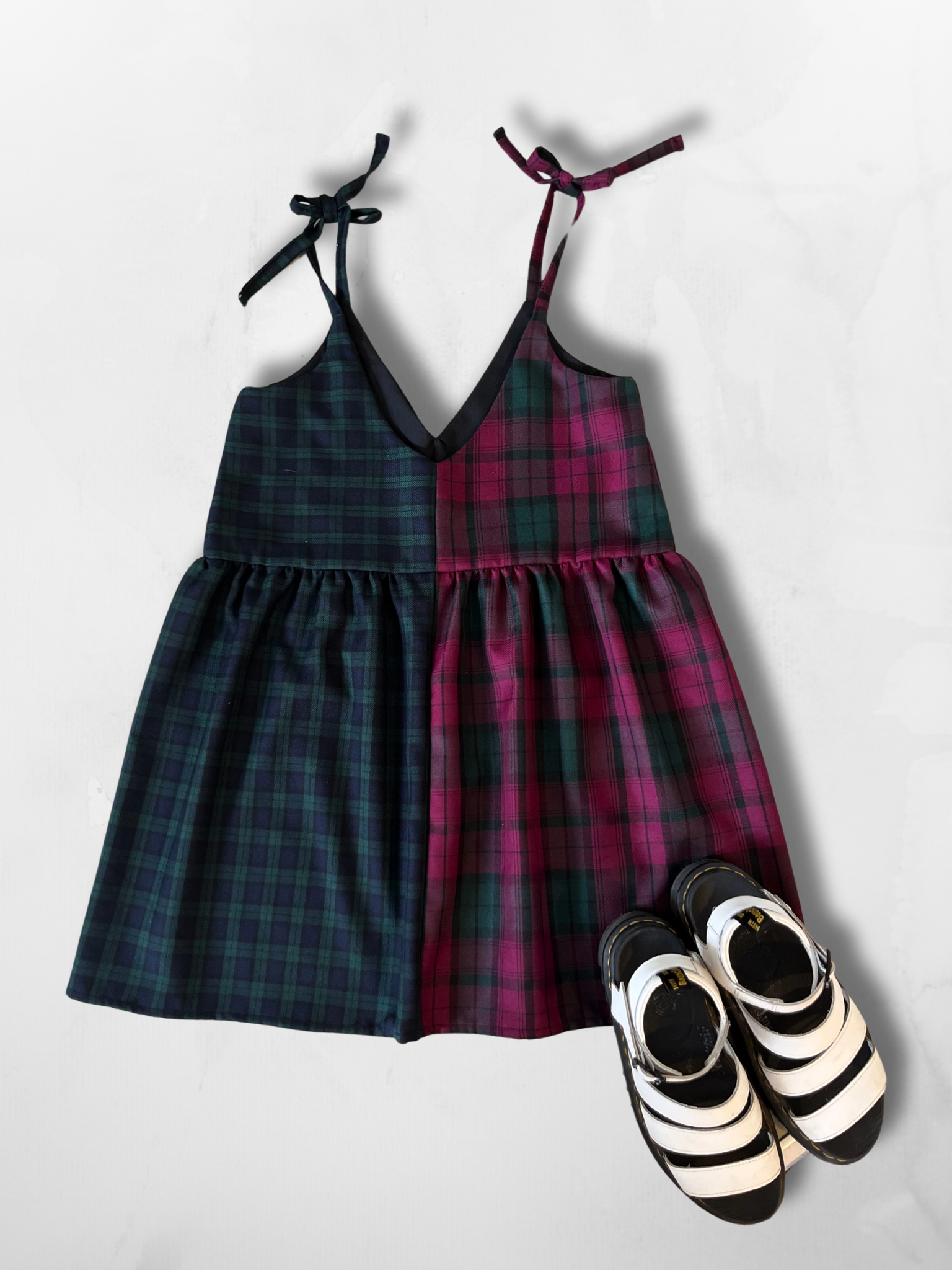 The dress above is made from the Navy and Green tartan, along with the Purple and Green fabric.