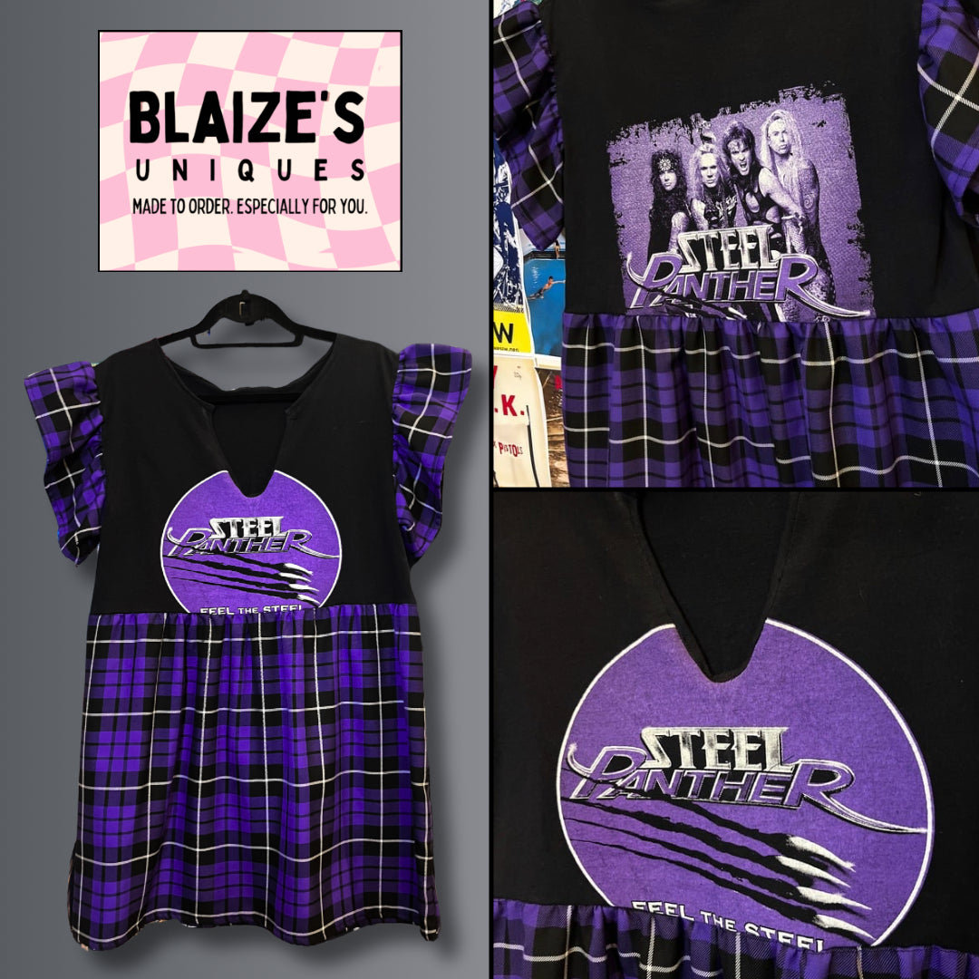 Welcome gorgeous! Say hello to the Steel Panther tee dress. This one has a V neck line.