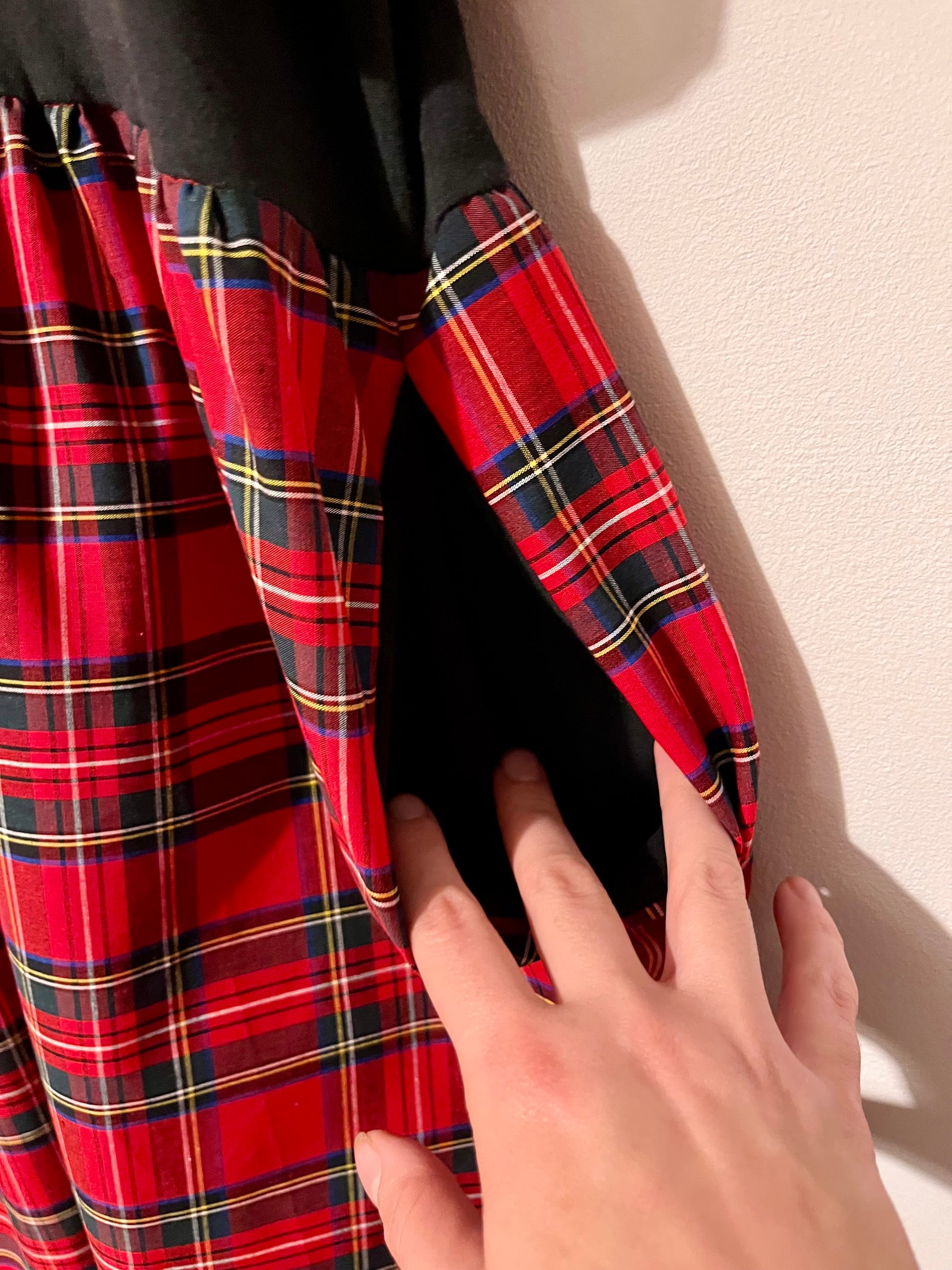 The Bowie tee dress made up in the red tartan! This one’s really a show stopper 😍. It features medium frills added to the original sleeve, some of the original sleeve has been removed for a better flow.