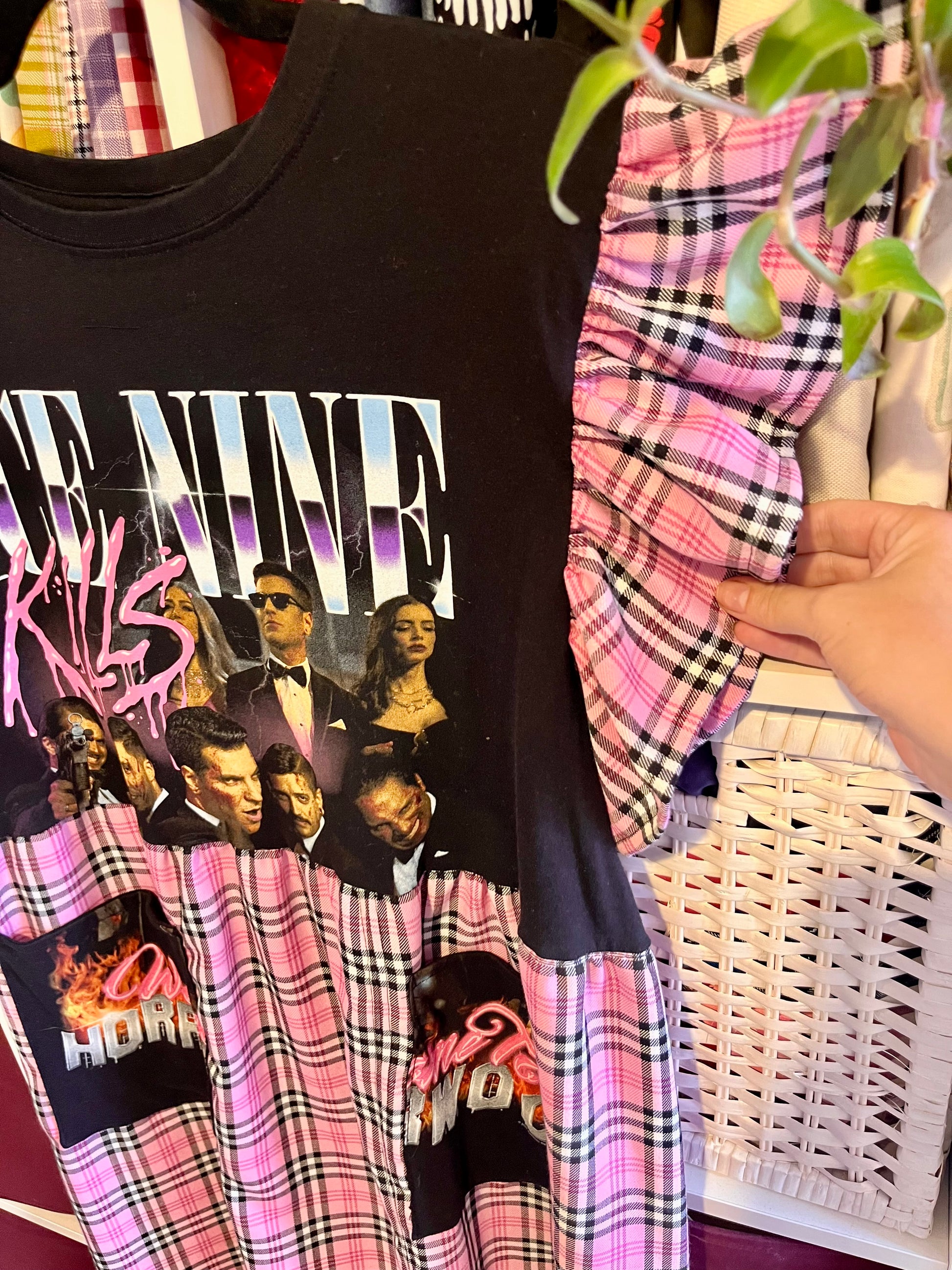 Heres the drop dead GORGEOUS INK midi tee dress in the pink tartan fabric.