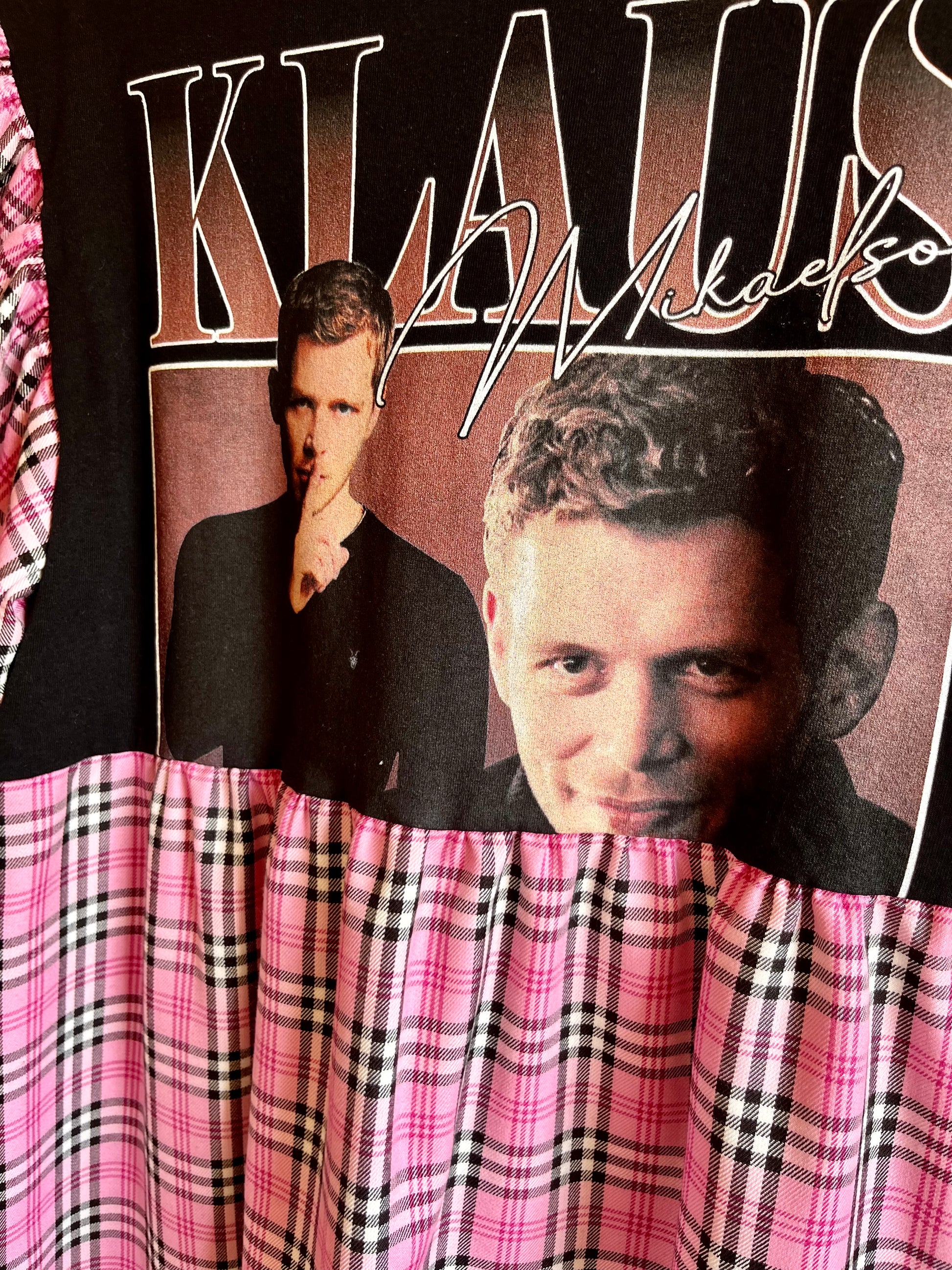 Are you team Klaus? If you are then here it is! The Klaus pink tartan dress. It’s so beautiful and flattering on.