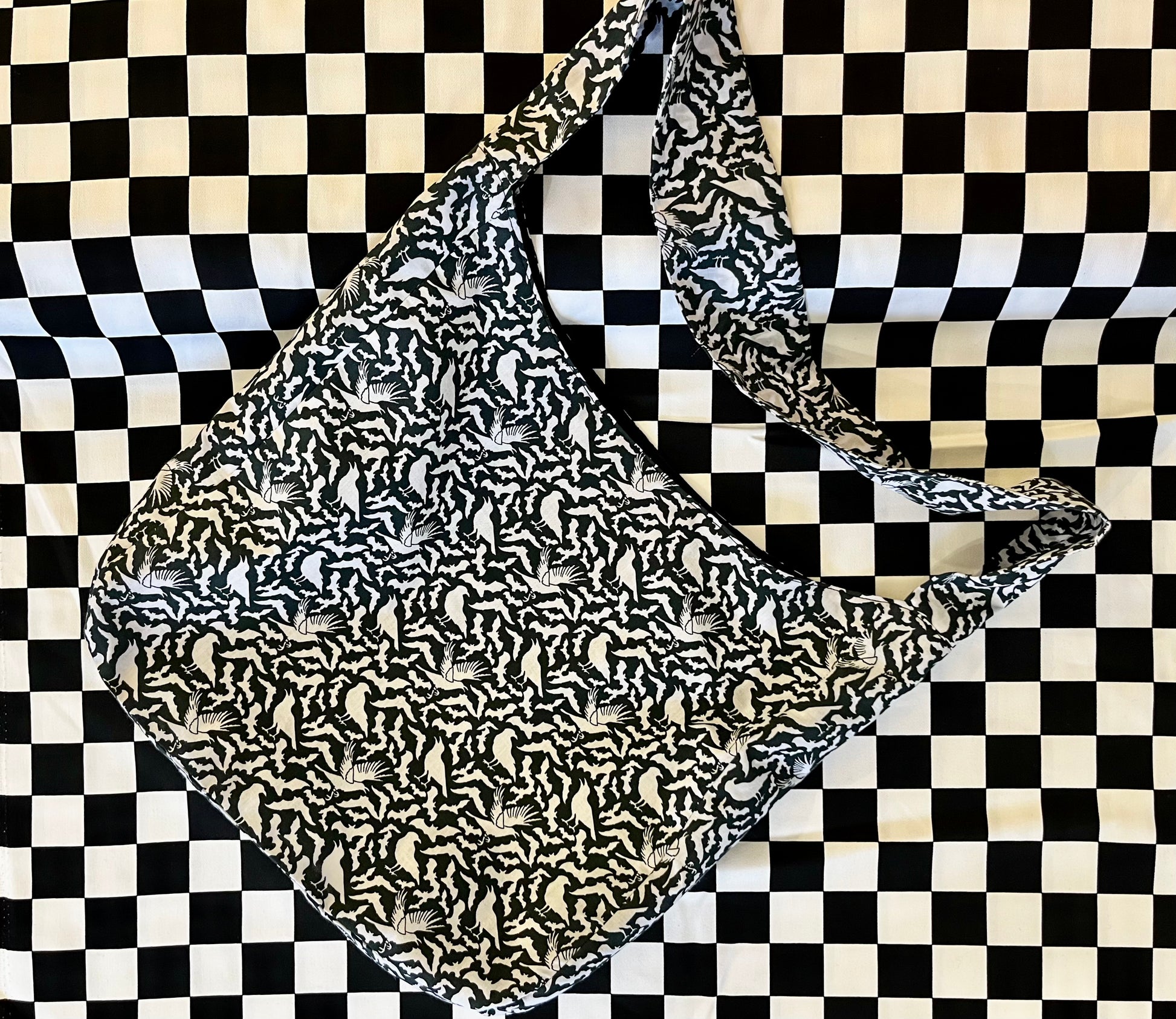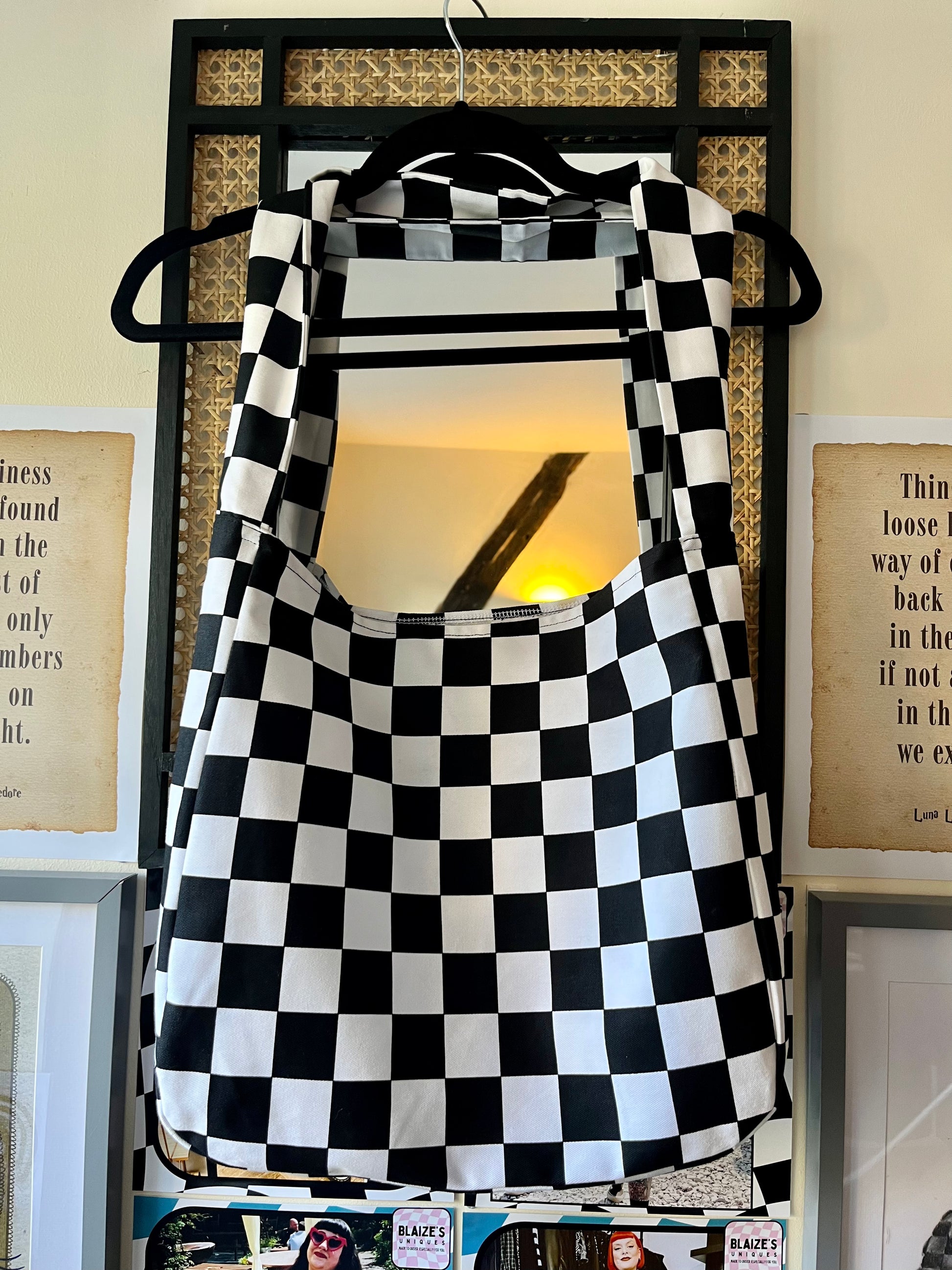 Featured above is the favourite Checkmate fabric, this all-purpose bag is lined for extra life.